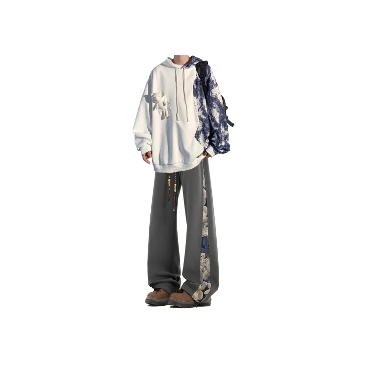 Белый свитшот + темно-серые повседневные штаны