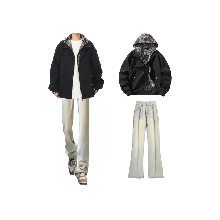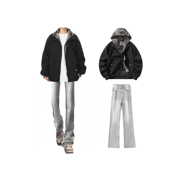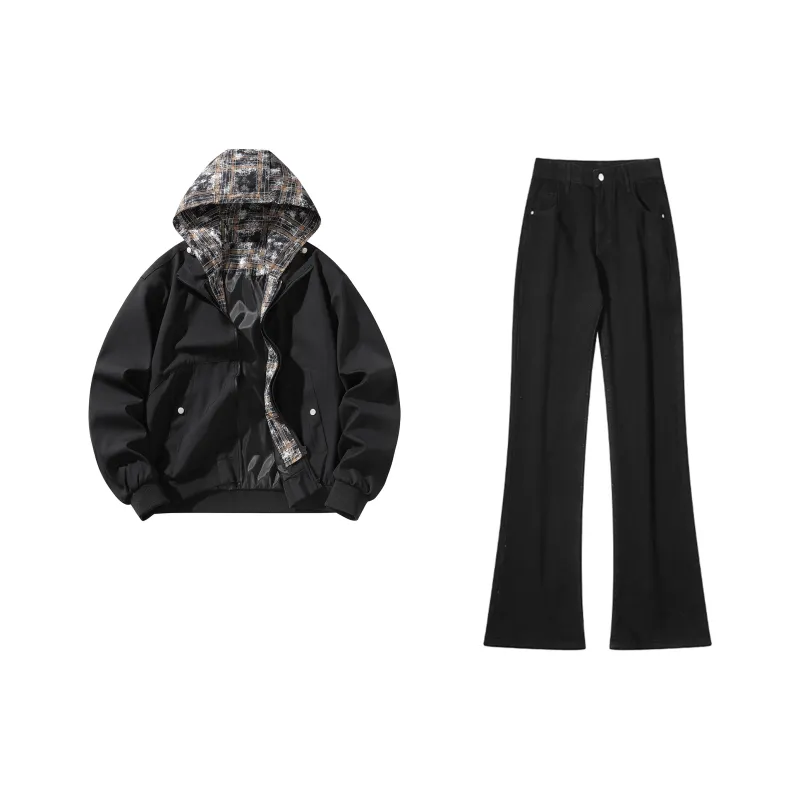 Комплект:Чёрная куртка + чёрные джинсы