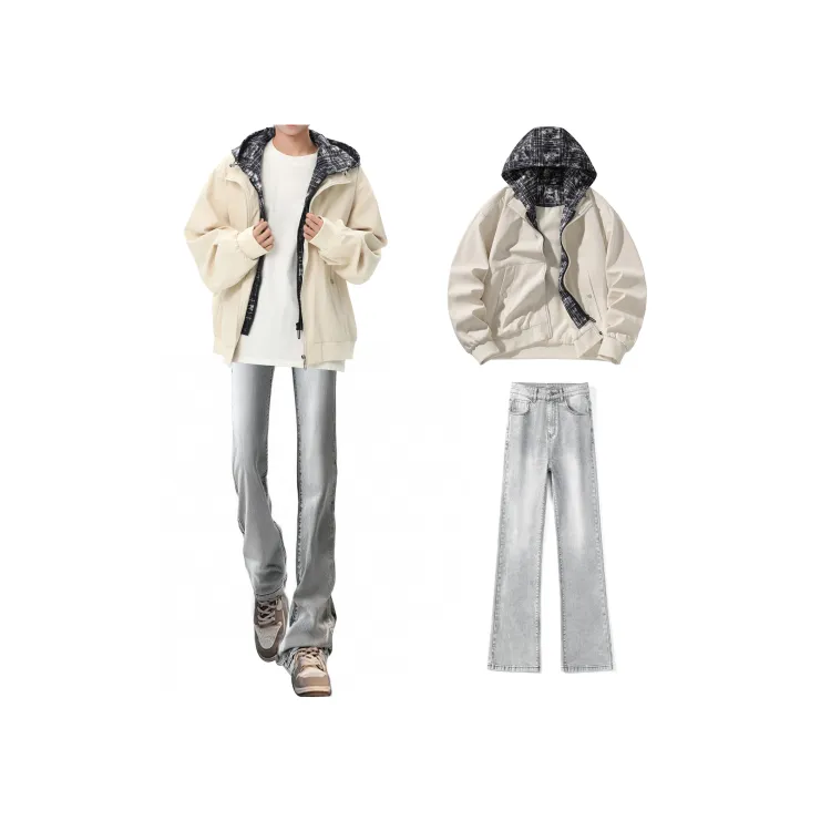 Хаки куртка + дымчато-серые джинсы