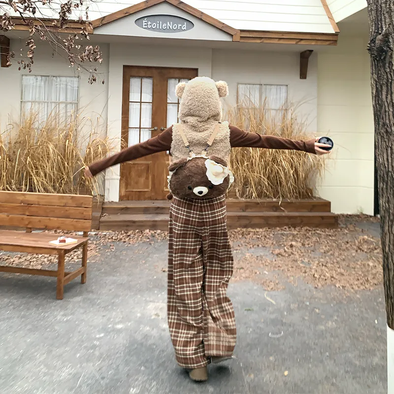 Коричневое пальто + штаны + сумка для покупок