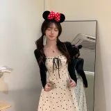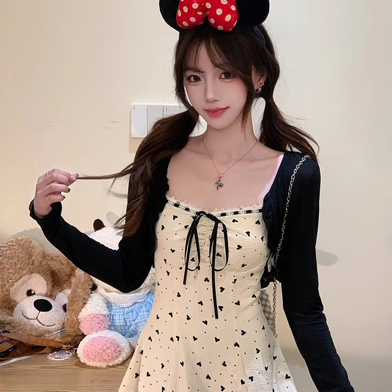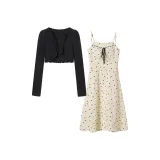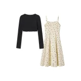 Комплект:Черный кардиган + абрикосовое платье-камзол, комплект одежды