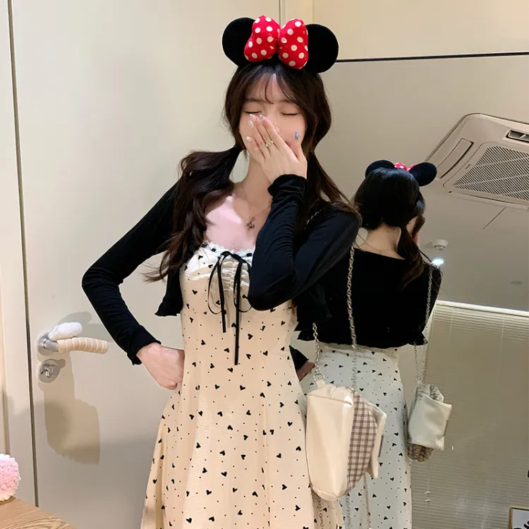 Черный кардиган + абрикосовое платье-камзол, комплект одежды