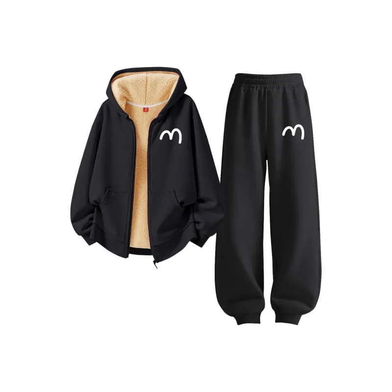 [Thickened и с флисовой подкладкой] M Выпуклый Буква K Черный + M Выпуклый Буква K Графитовый Серый