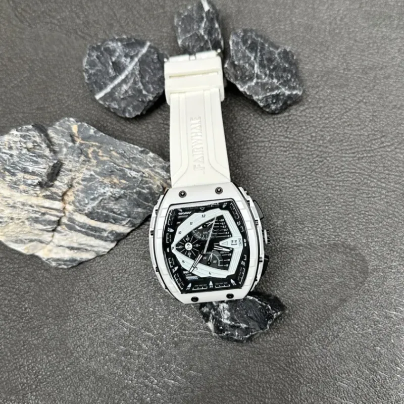 FAIRWHALE Driver Collection Кварцевый механизм Силиконовый ремешок Часы Мужские Черный циферблат