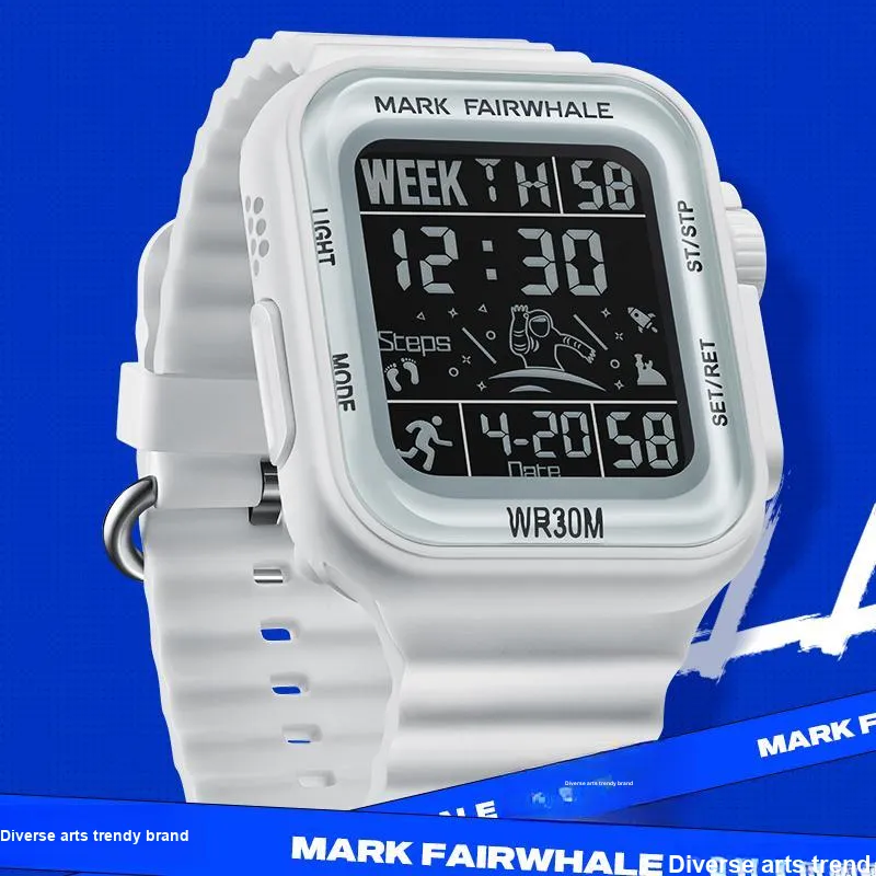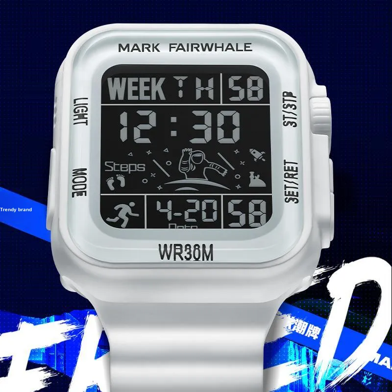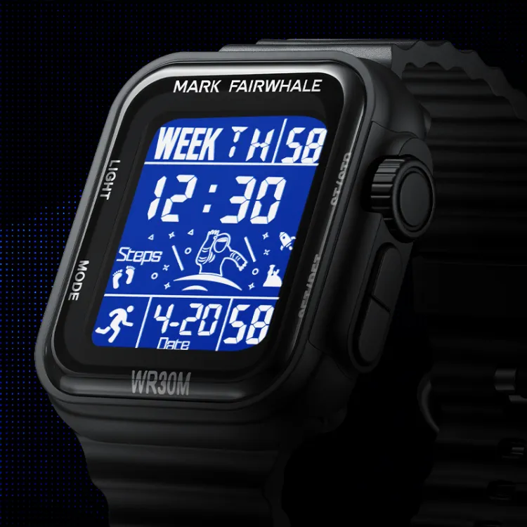 FAIRWHALE Электронный Механизм Резиновый Ремешок Часы Мужские Черный Циферблат