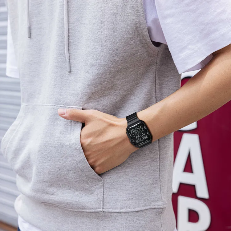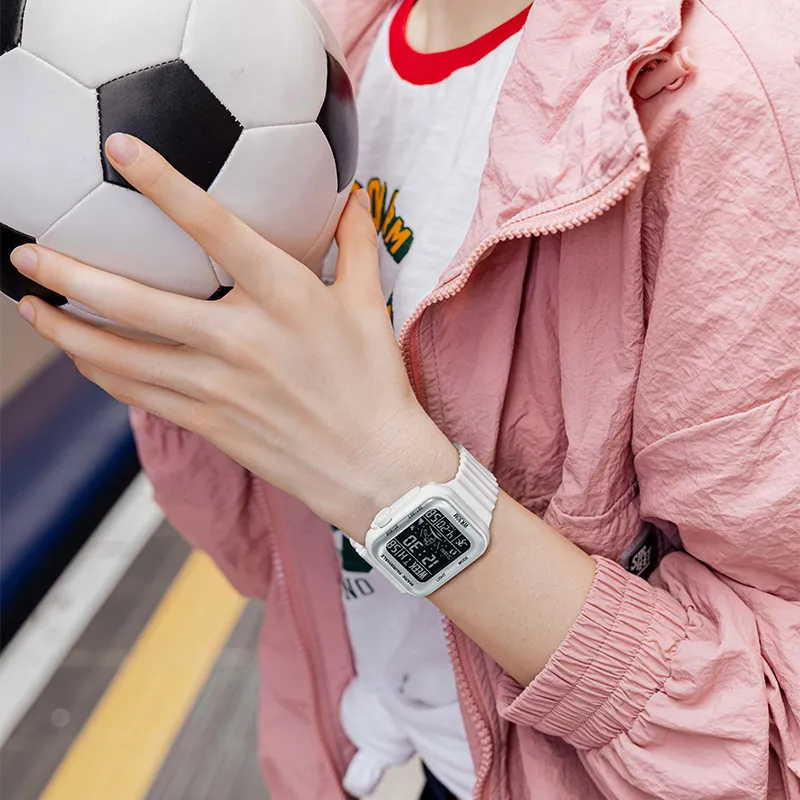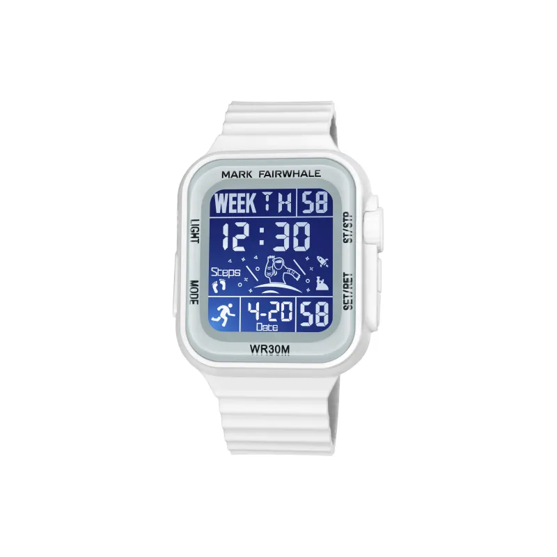 Комплект:Белый корпус, черный циферблат, белый резиновый ремешок