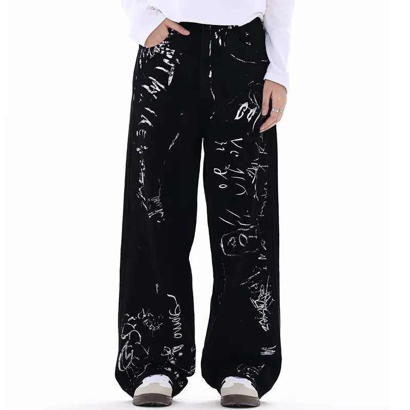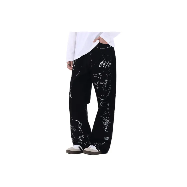 FAIRWHALE Черный Граффити Унисекс Джинсы