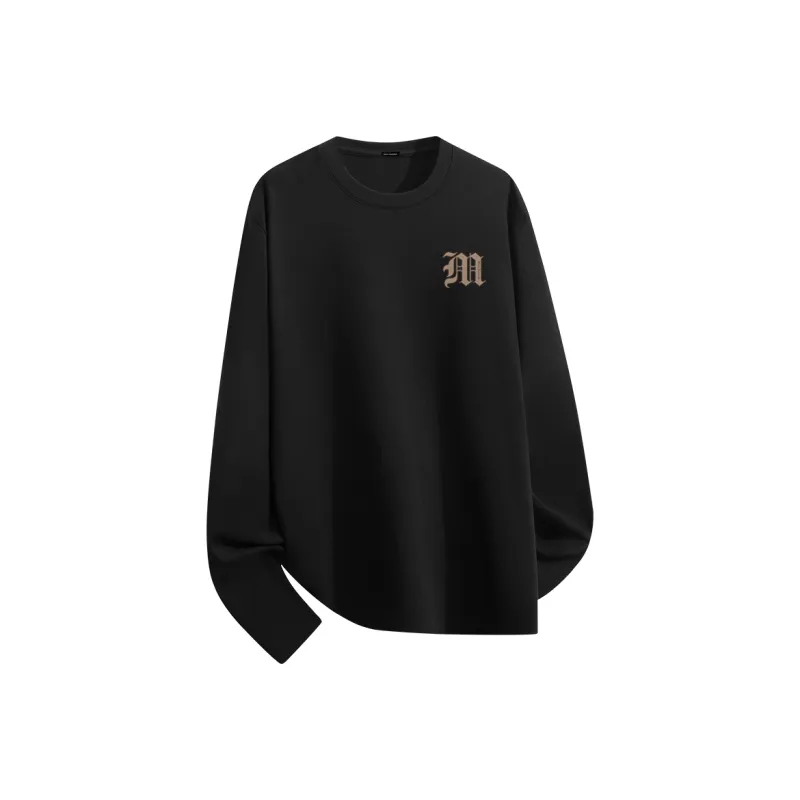 [1 пачка теплый флис, круглый вырез] Черный (Mf винтажный коричневый логотип на груди)