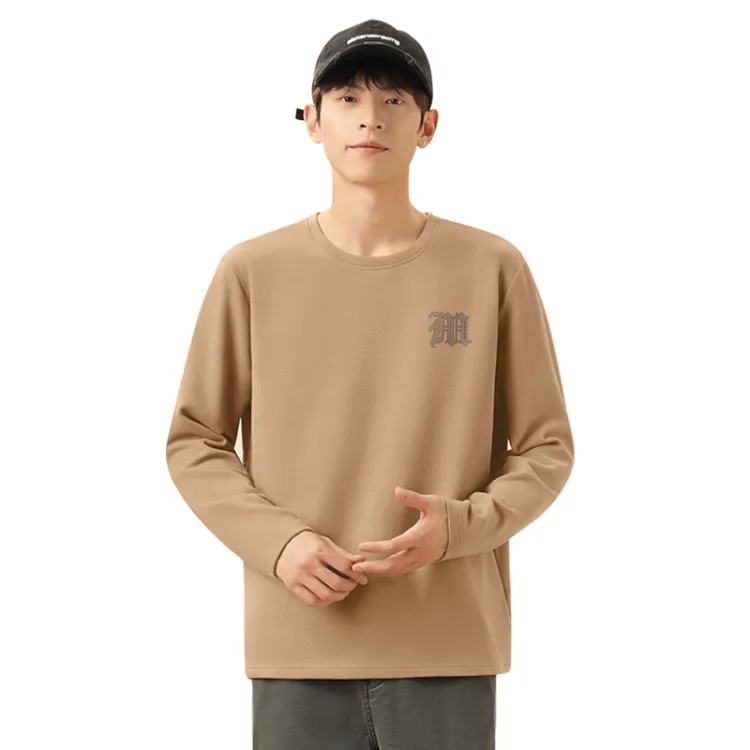 [1 пачка теплый флис круглый вырез] Абрикос (Mf винтажный коричневый с принтом логотипа на груди)
