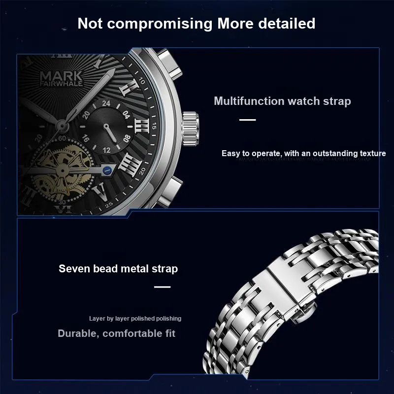 FAIRWHALE Кварцевый механизм металлический ремешок мужские часы черный циферблат