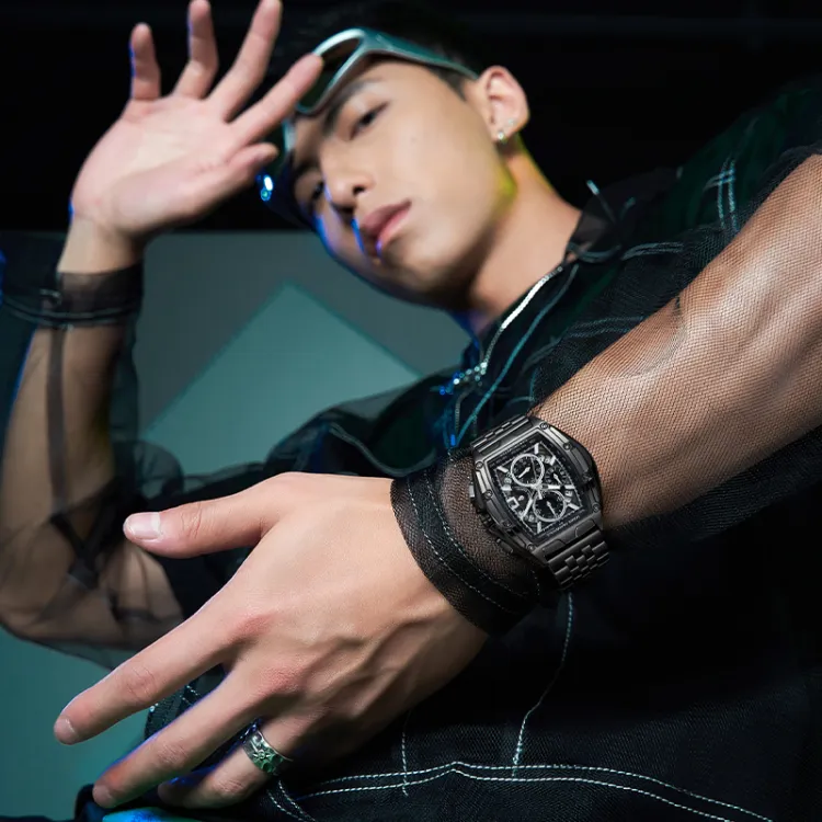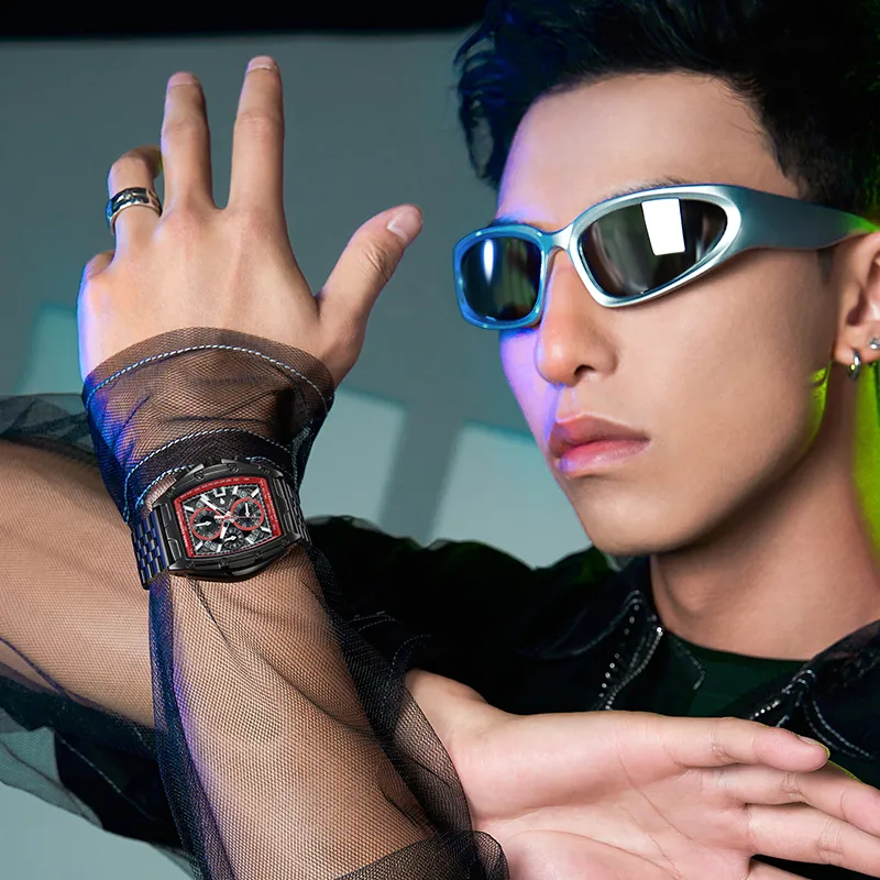 Циферблат Цвет:Черный корпус, красный циферблат, черный стальной браслет