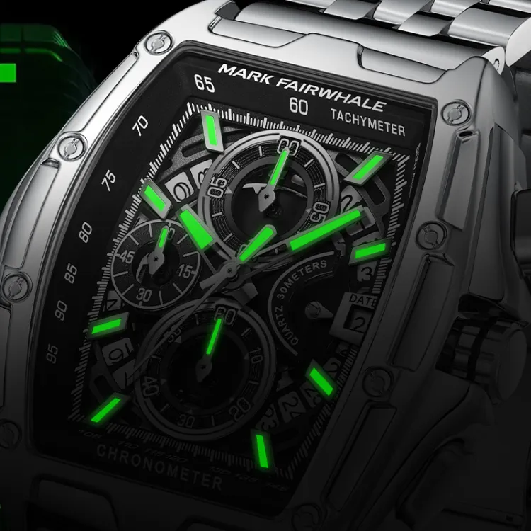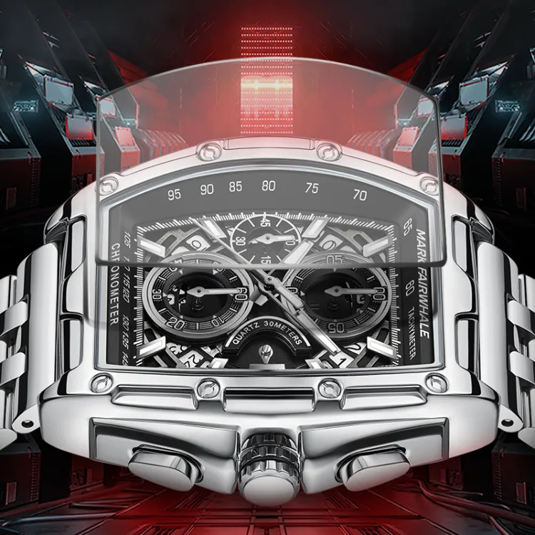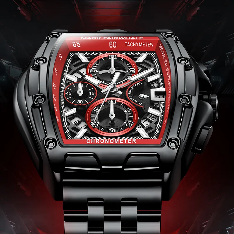 FAIRWHALE Race Collection Кварцевый механизм Металлический ремешок Часы Мужские Черный циферблат