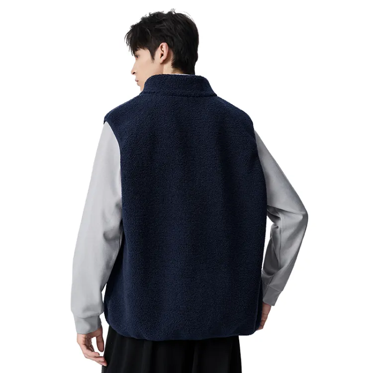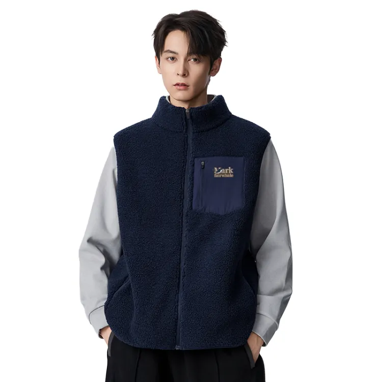 [На открытом воздухе Теплый Плюшевый Жилет] Темно-синий (Mf47 Синий Кит Tale Логотип на груди)