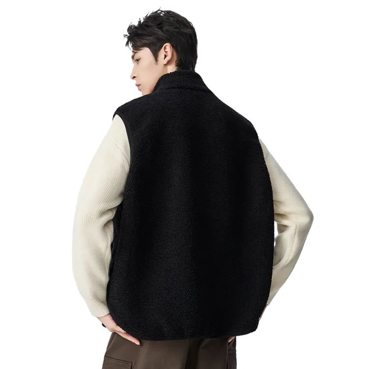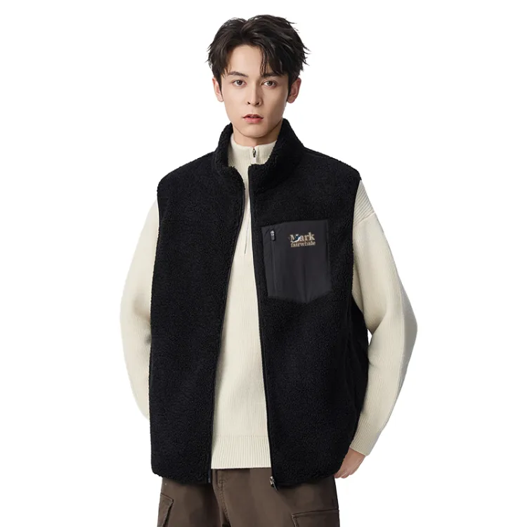 [На открытом воздухе Теплый Плюшевый Жилет] Черный (Mf47 Синий Кит Tale Логотип на груди)