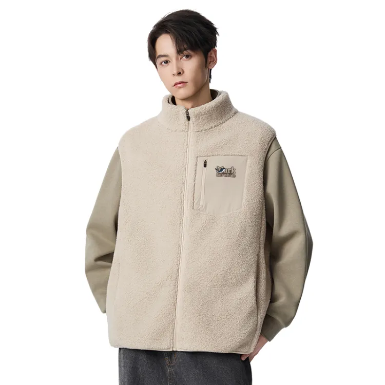 [На открытом воздухе Теплый Плюшевый Жилет] Светлый Кофейный (Mf47 Синий Кит Tale Логотип на груди)
