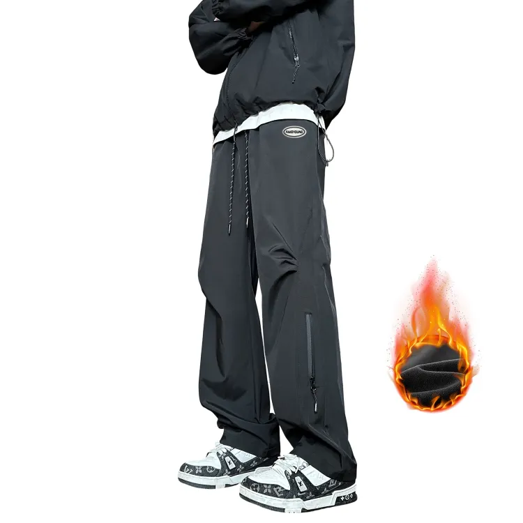 Fakeyoung Черный [С флисовой подкладкой и утолщенный] Унисекс Повседневные Штаны