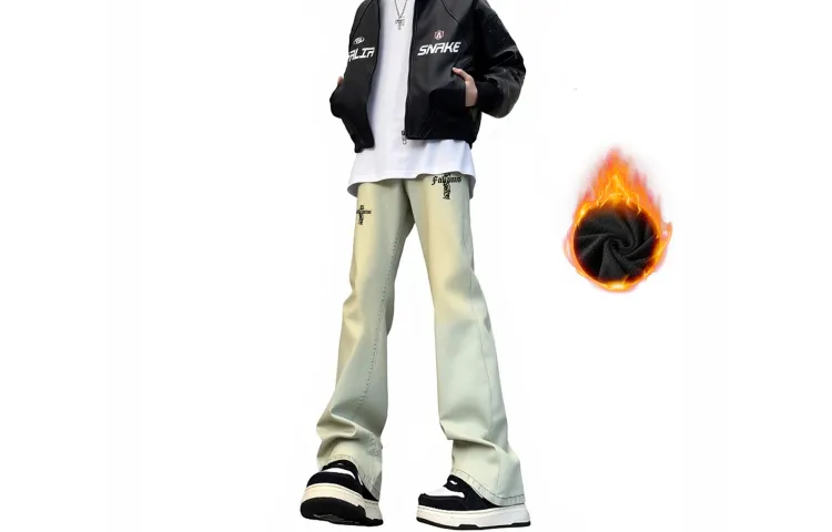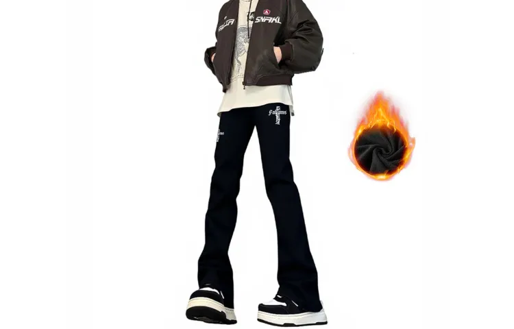 FALIAMS Осенние и зимние джинсы с флисовой подкладкой унисекс