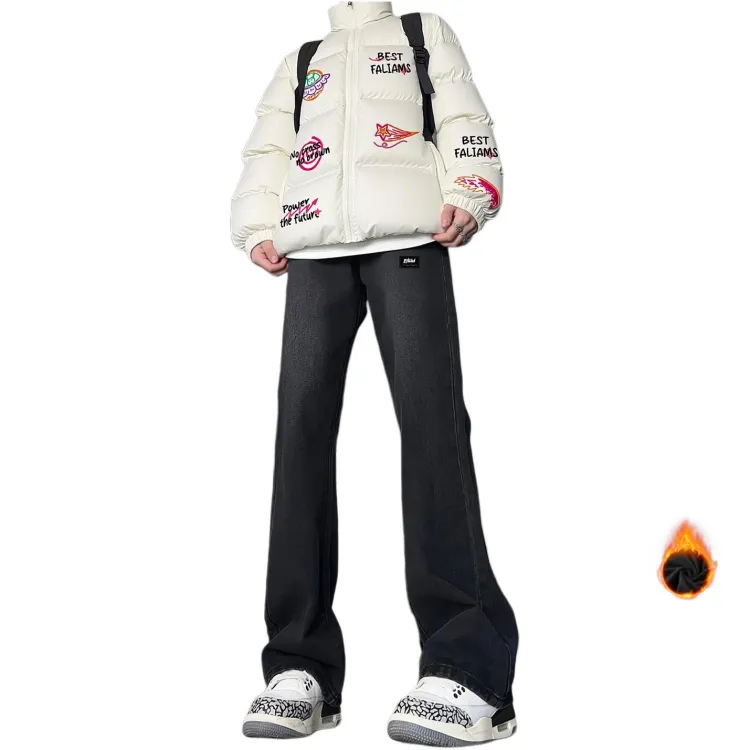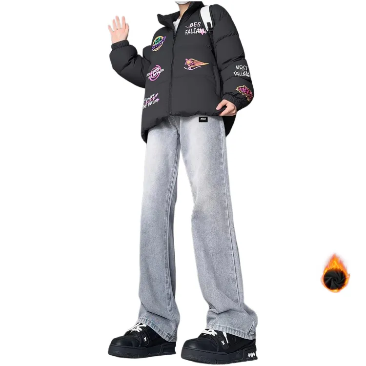 FALIAMS Зимний Утолщенный и С флисовой подкладкой Термические Джинсы Унисекс