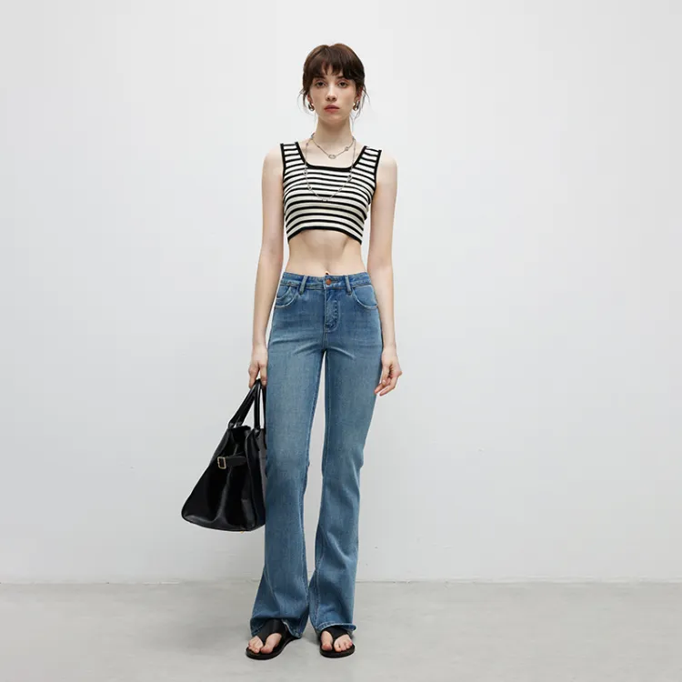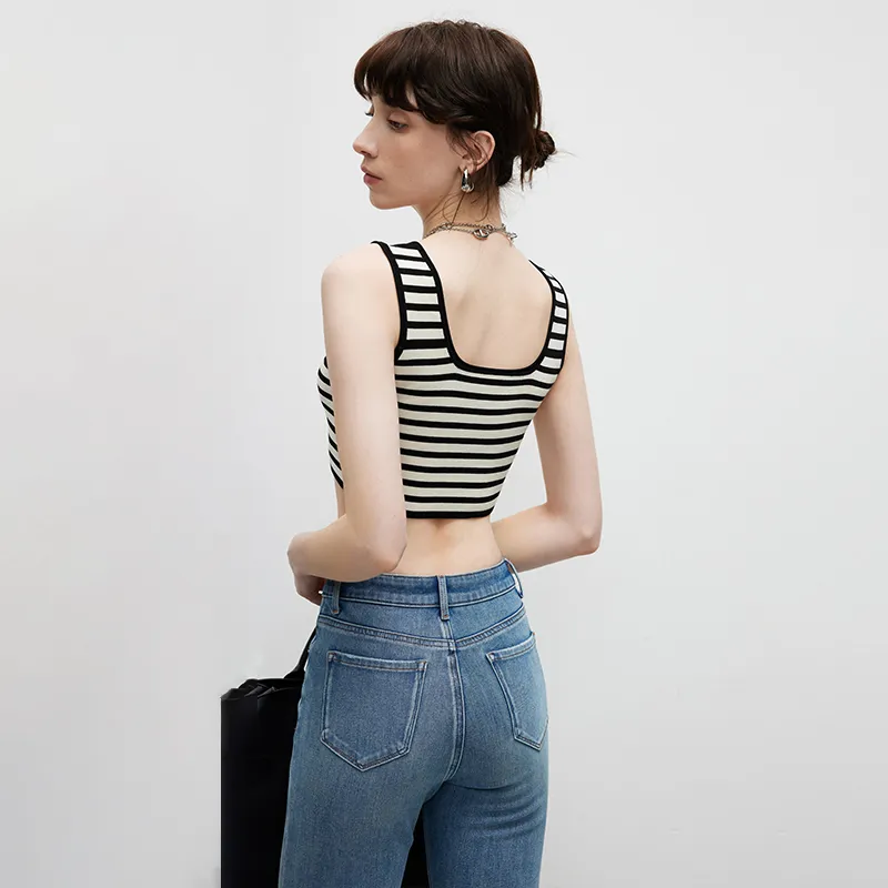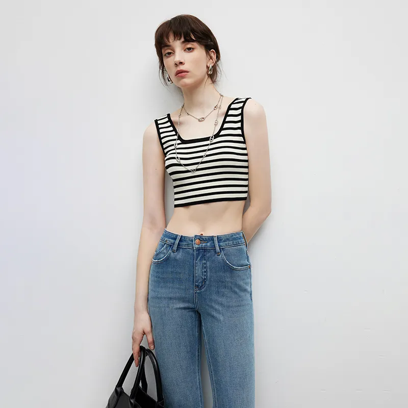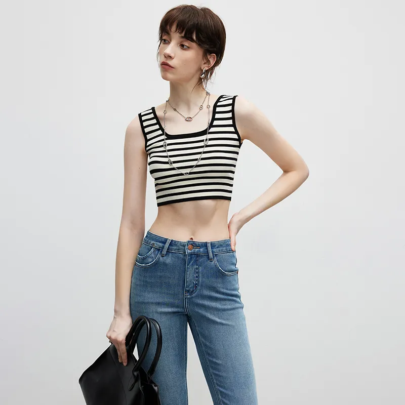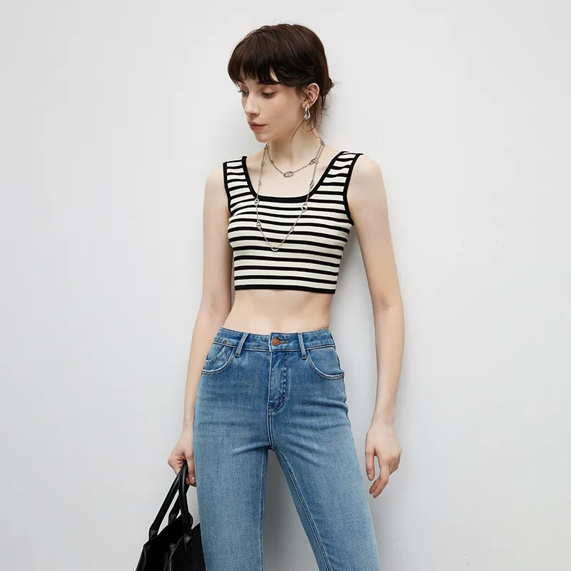 Famanxuan Майка Женская Классическая Абрикос Черный Полосы