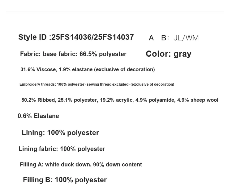 • Содержание пуха