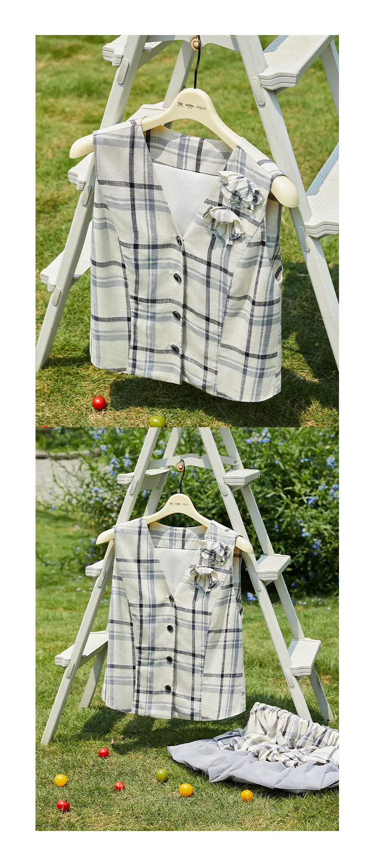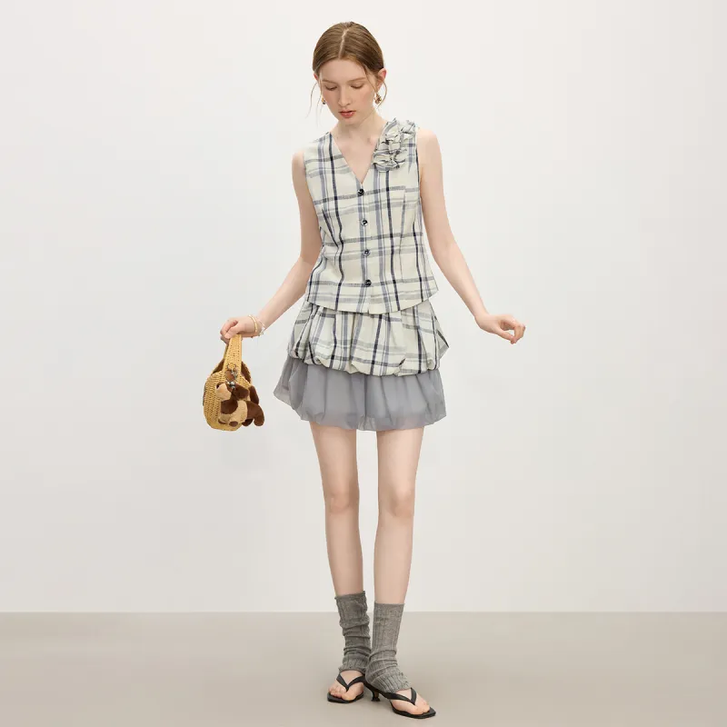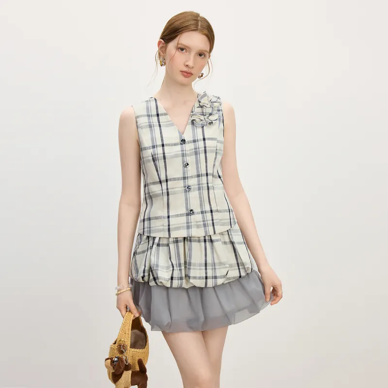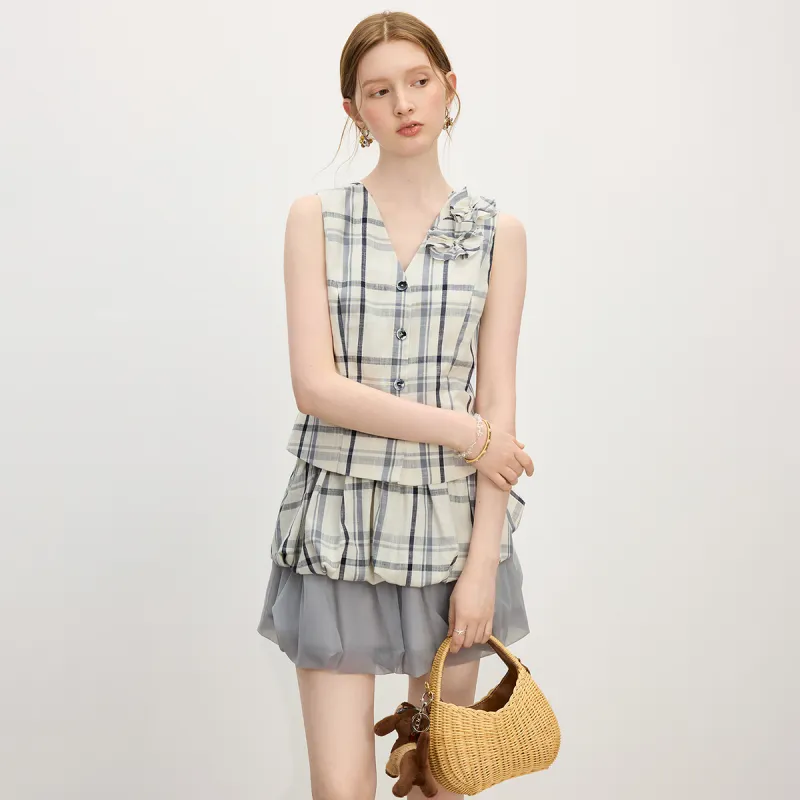 FANSILANEN Бежево-серый Клетчатый Женские Рубашки