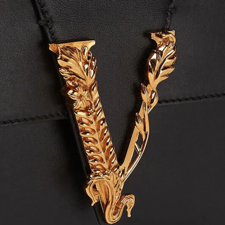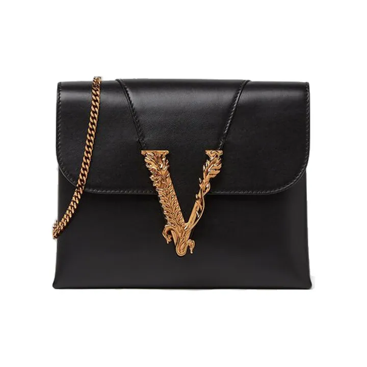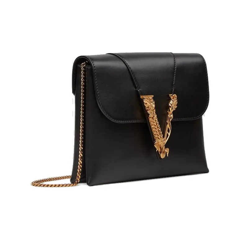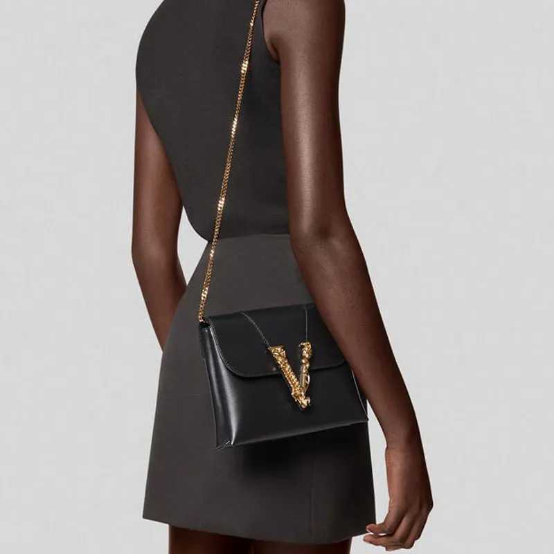 FANSIZHE VERSACE Овчина Сумка с цепочкой Маленькая квадратная сумка Сумка через плечо Сумка на плечо Женская Черная