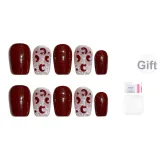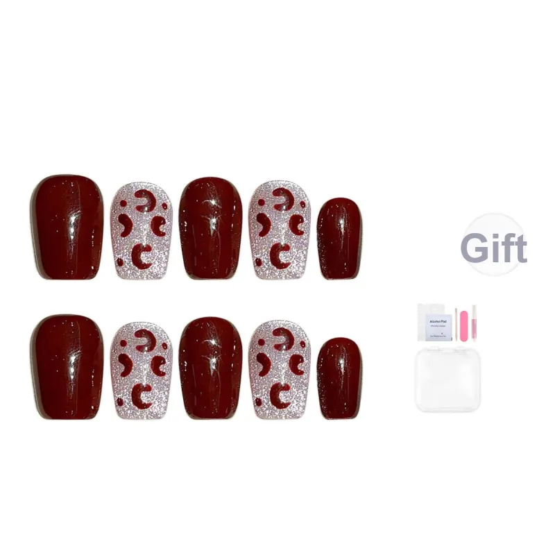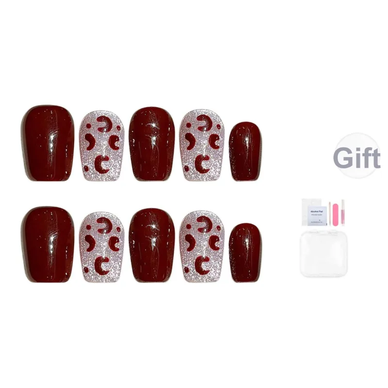 Fanze Бордовый Леопардовый принт Зимний Кристальный Кошачий Глаз Осветляющий False Nail Короткий LADDER Красный Jump Цвет 15 мм