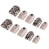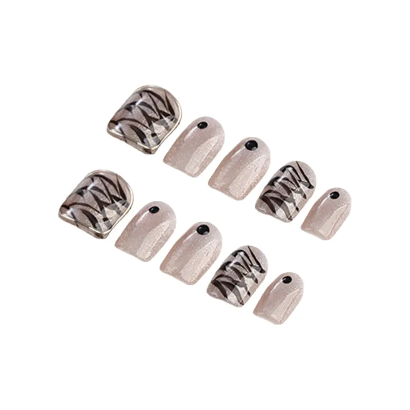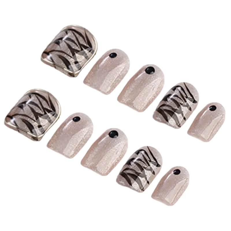 Fanze Кристальный Тигровый принт Ручная работа LED Набор лака для ногтей False Nail 20mm Короткий Квадрат Черный Smudge