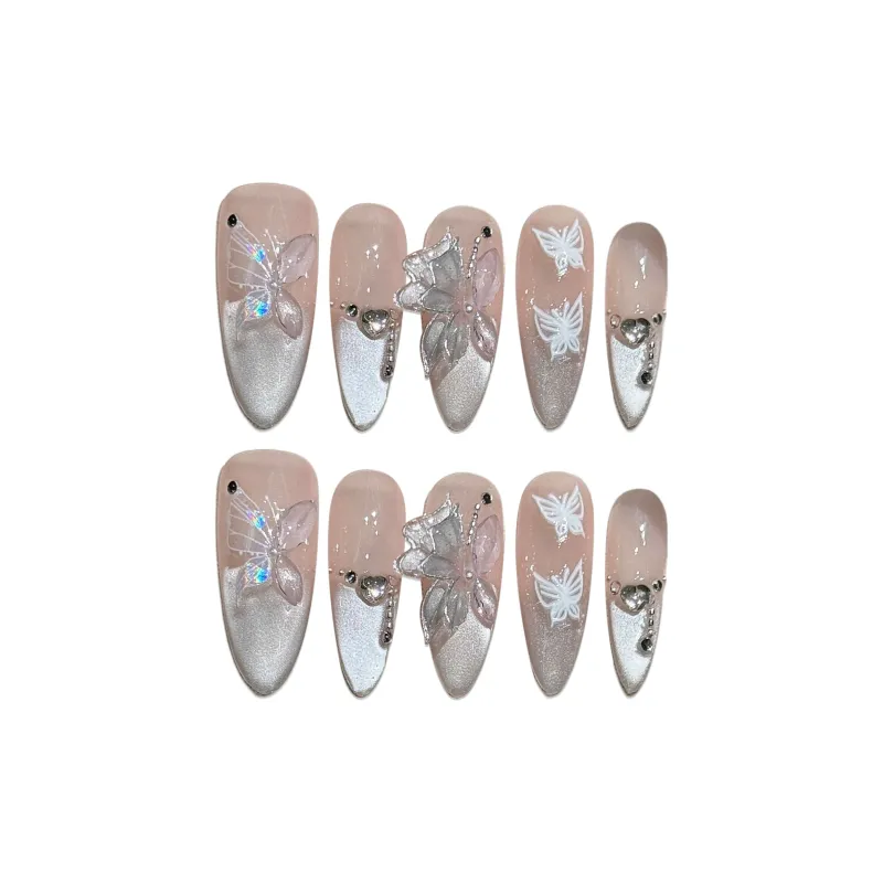Fanze Ледяной кристалл Луна Кошачий глаз 3D-эффект False Nail MID Длина (размер в длину) Розовый Румяна Stain 30MM