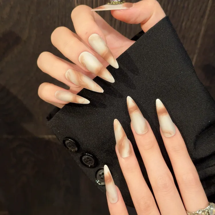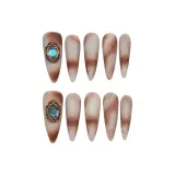 Fanze Стиль Майярд False Nail Острый Тип Янтарный Смужка Матовый