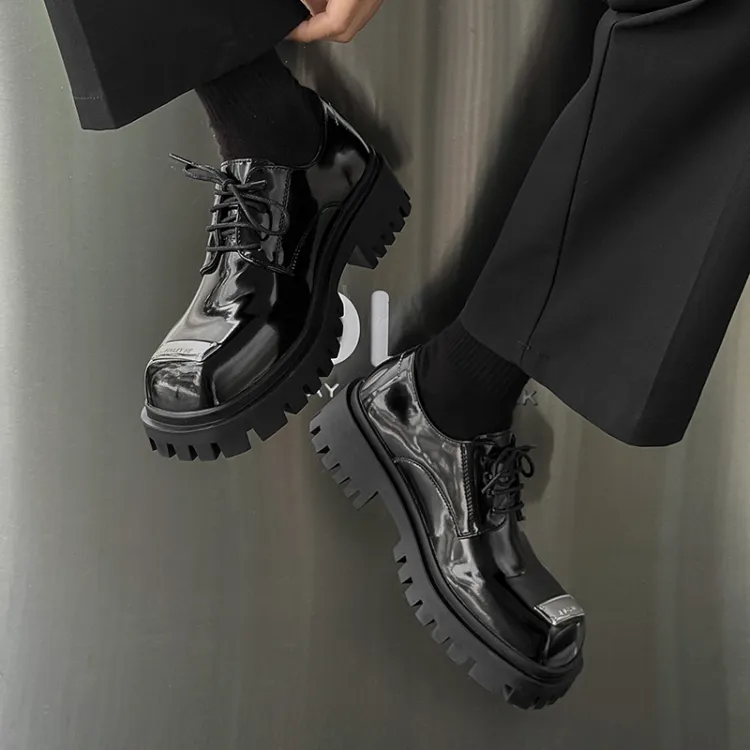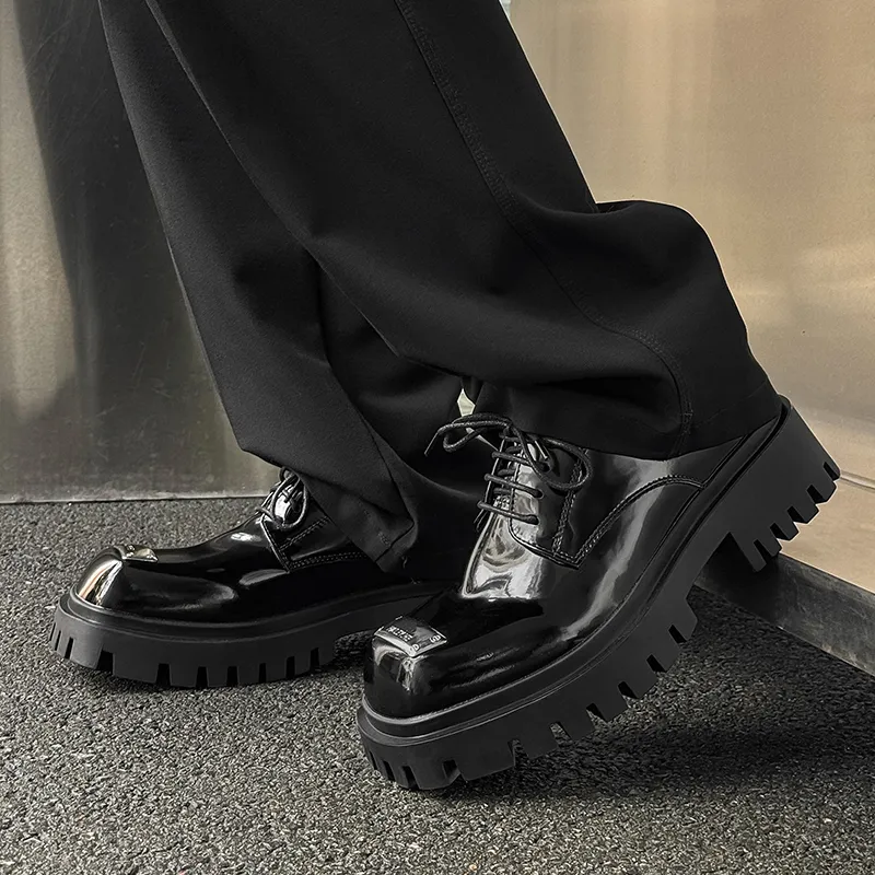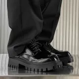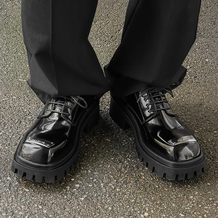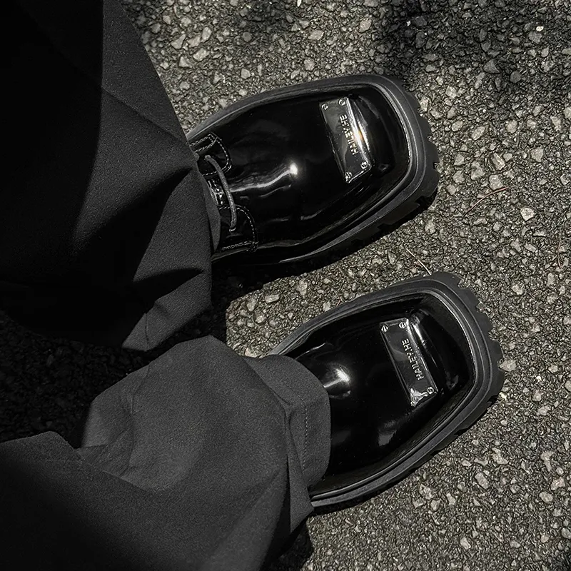 FAPAI Повседневные кожаные туфли с низким верхом черные лакированная кожа мужской