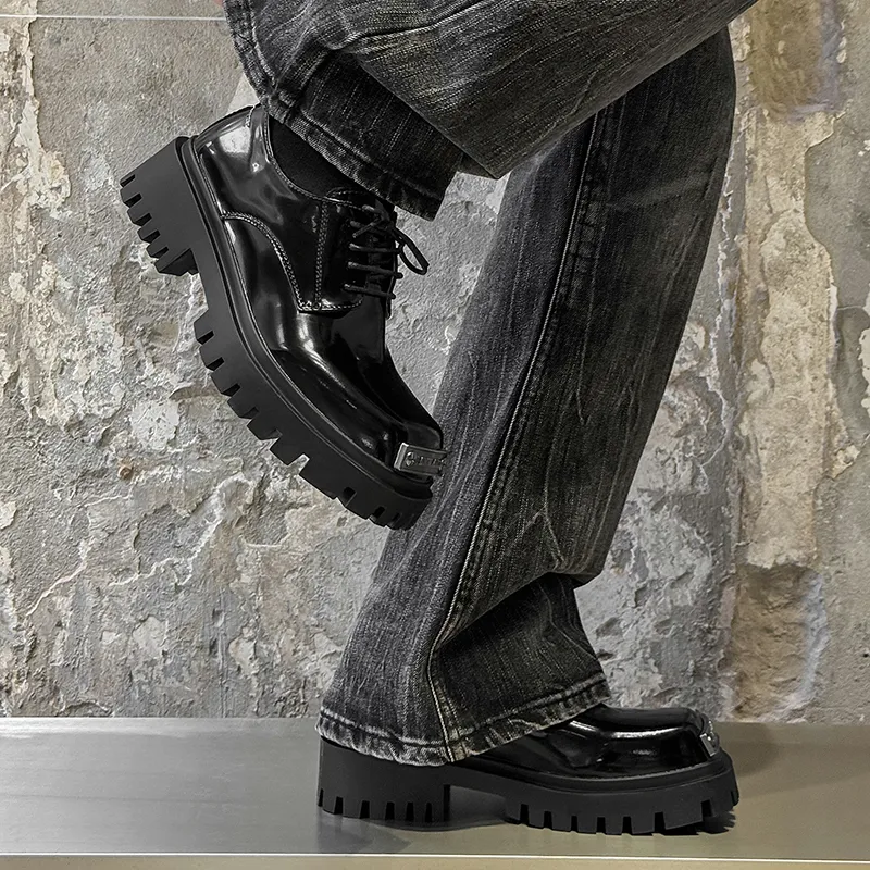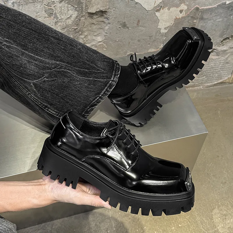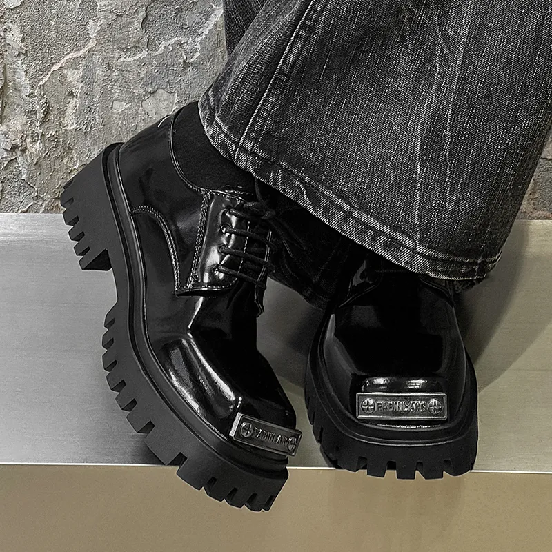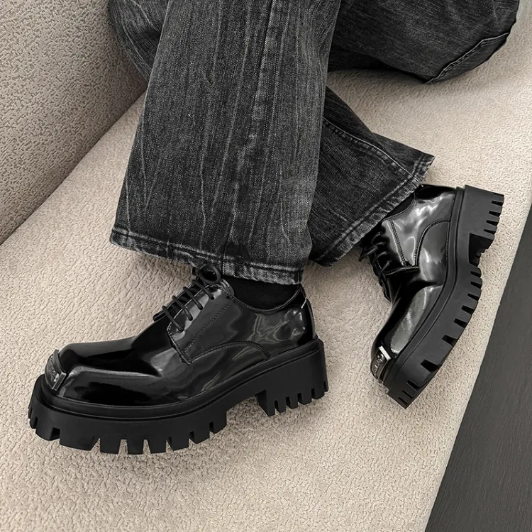 FAPAI Повседневные кожаные туфли с низким верхом черные лакированная кожа мужской