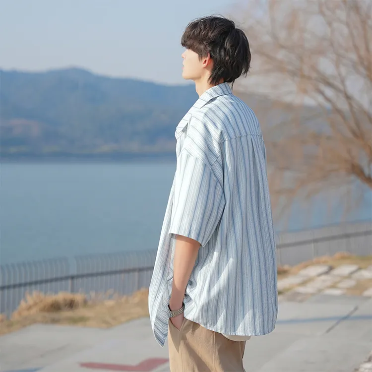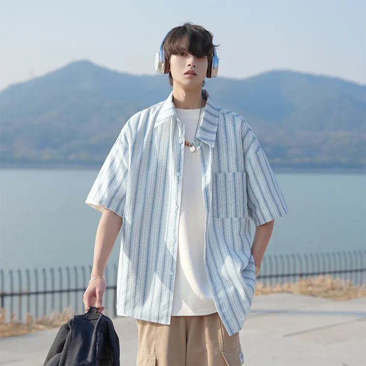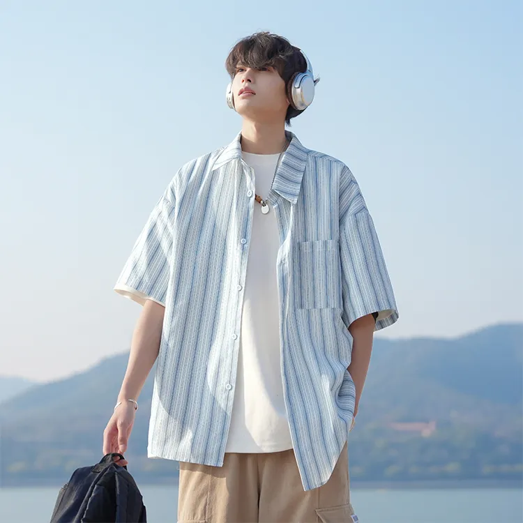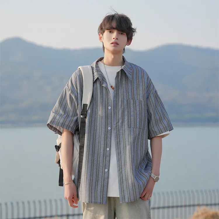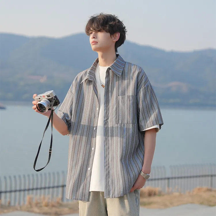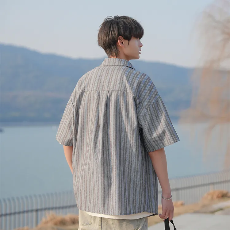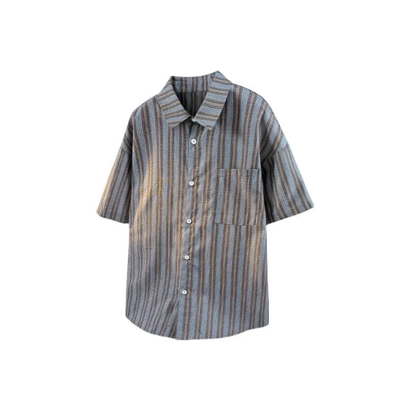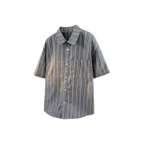 Fashion Versatile Дышащая Тяжелая Рубашка с Отложным Воротником с Короткими Рукавами Унисекс