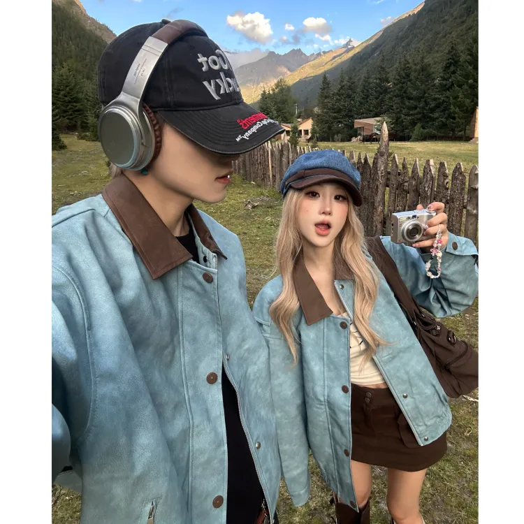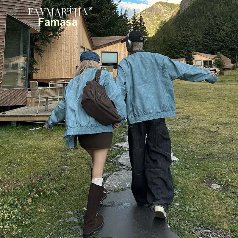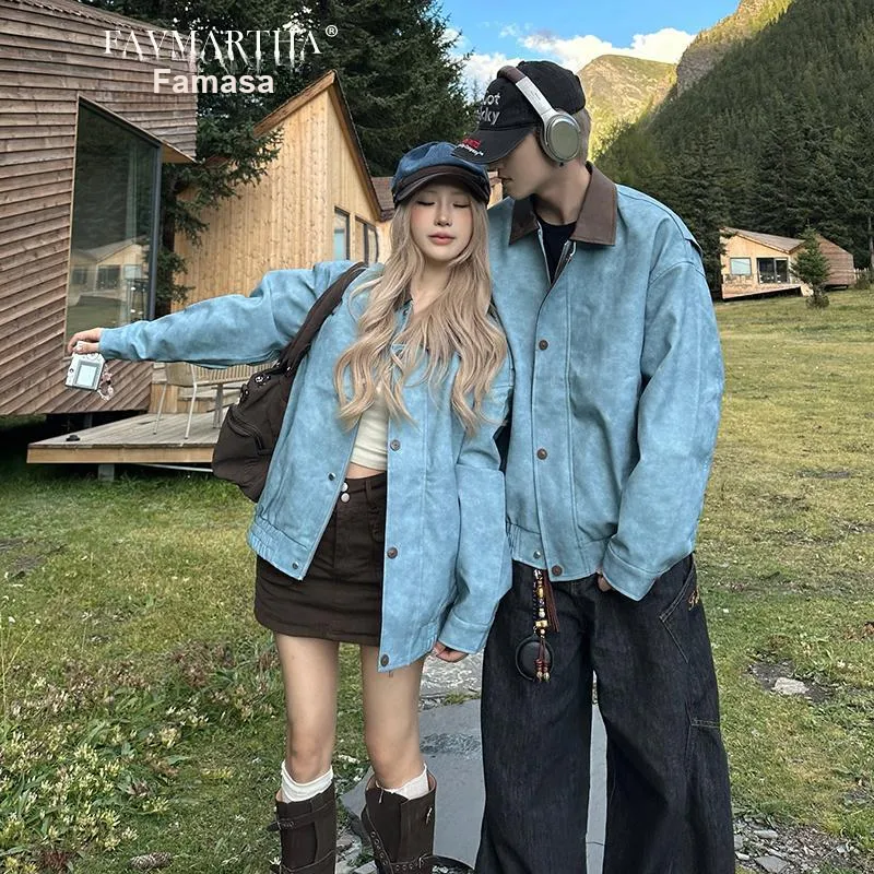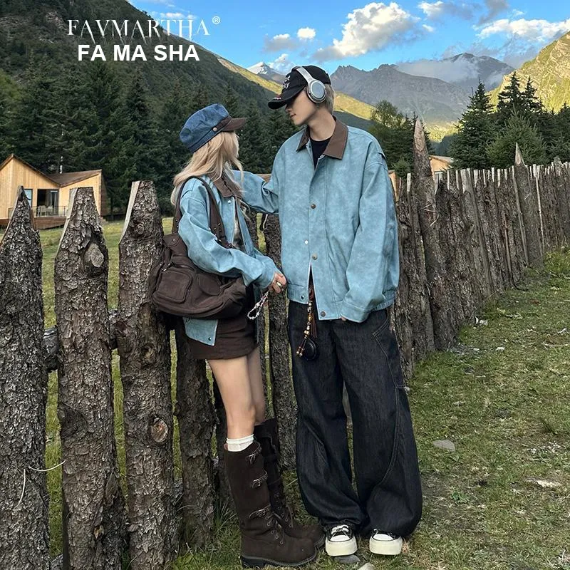 FAVMARTHA Синий Толстый Версия Унисекс Куртки