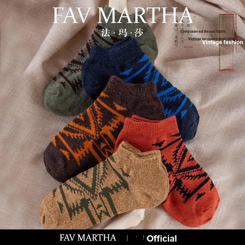 FAVMARTHA Жаккардовая пряжа Мужские носки без видимого края