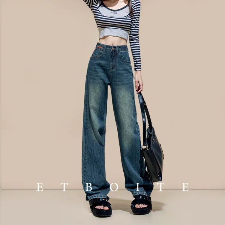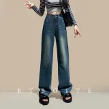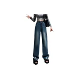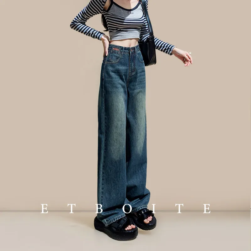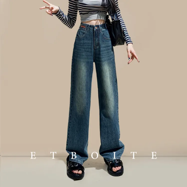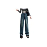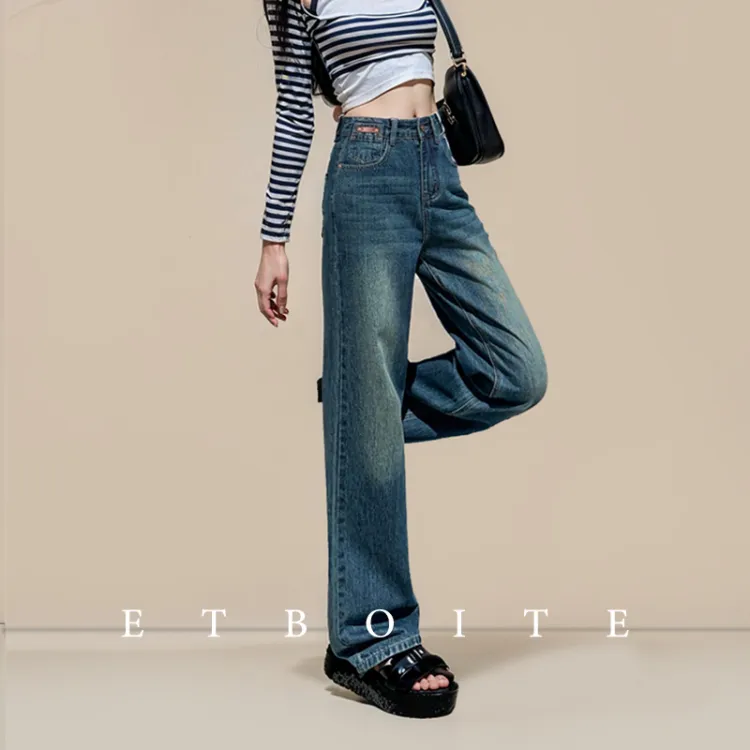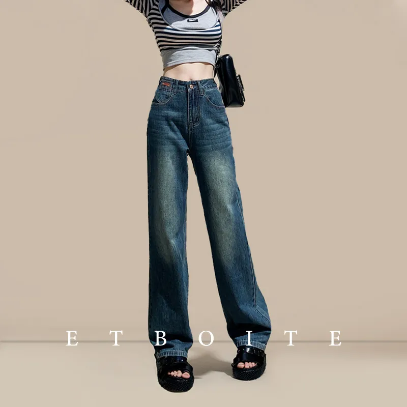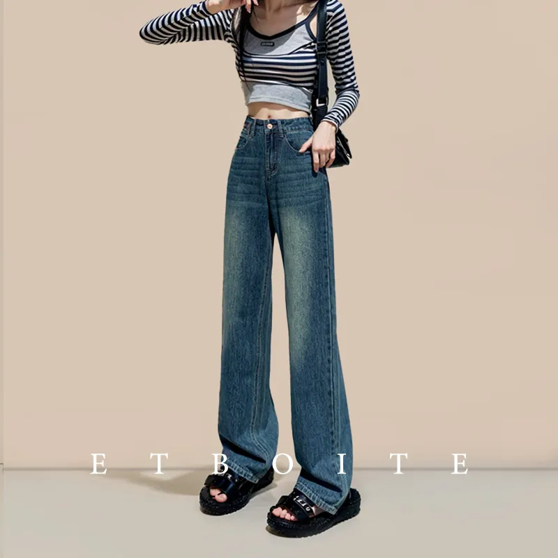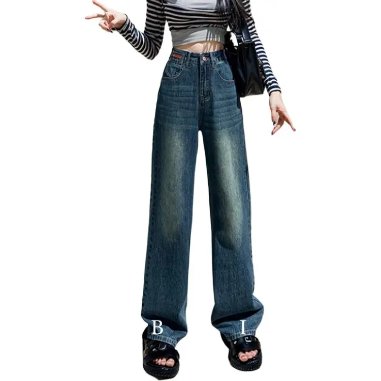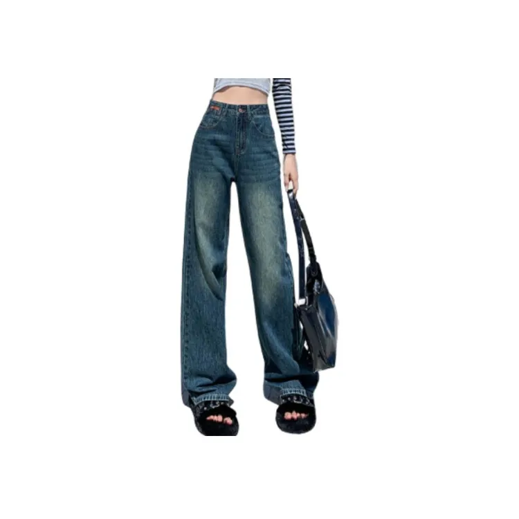 FAWENXIANGZI Джинсы Женские Винтаж Синий