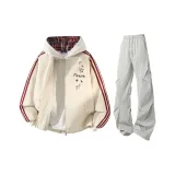 Абрикос + Светло-серые штаны + Бело-серый свитшот с фотинией