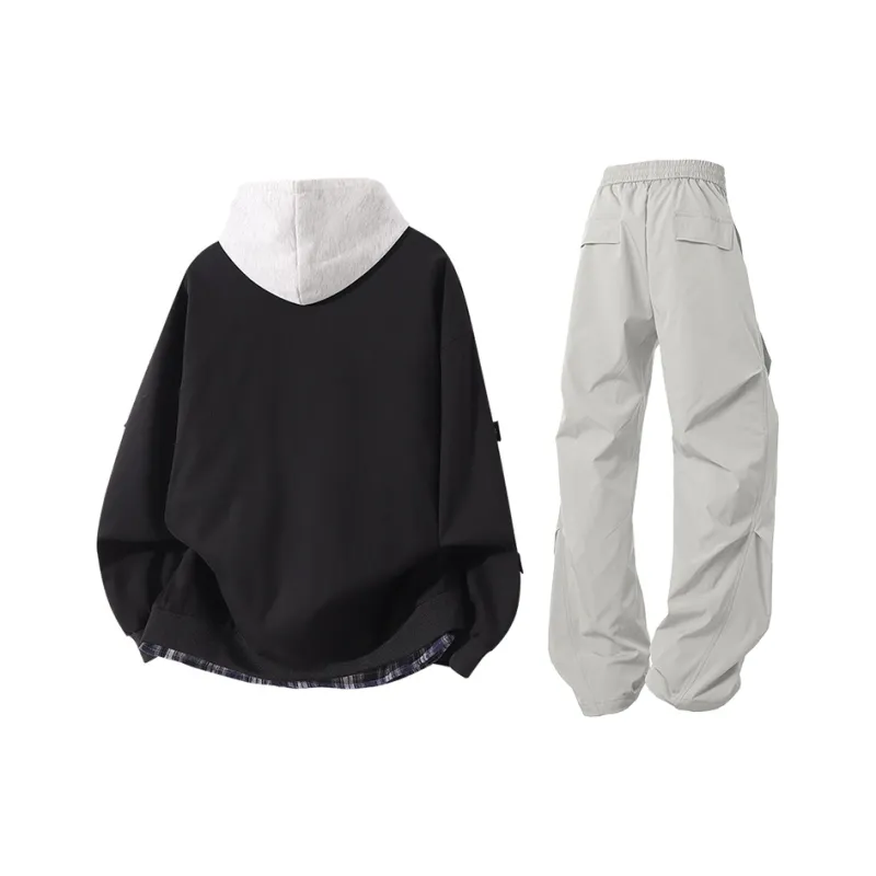 Комплект:Чёрные + Светло-серые штаны + Светло-серый свитшот