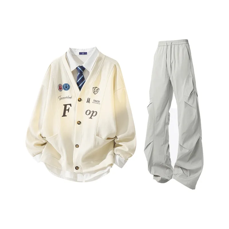 Комплект:Абрикос + Светло-серый [Брюки] (Без воротника)