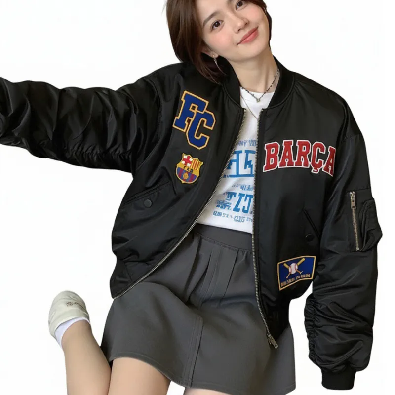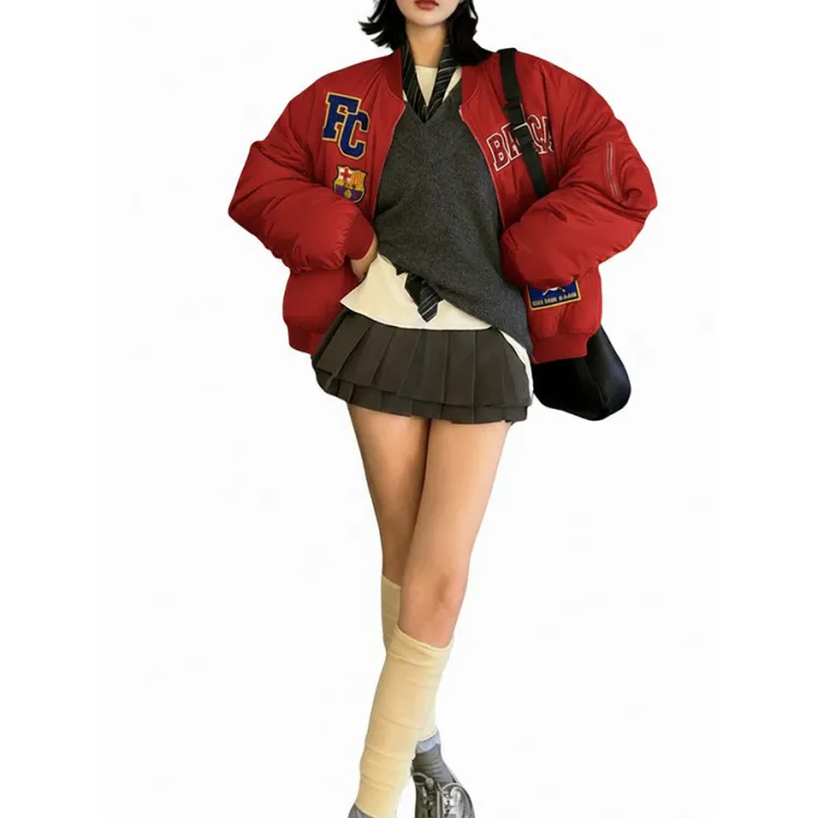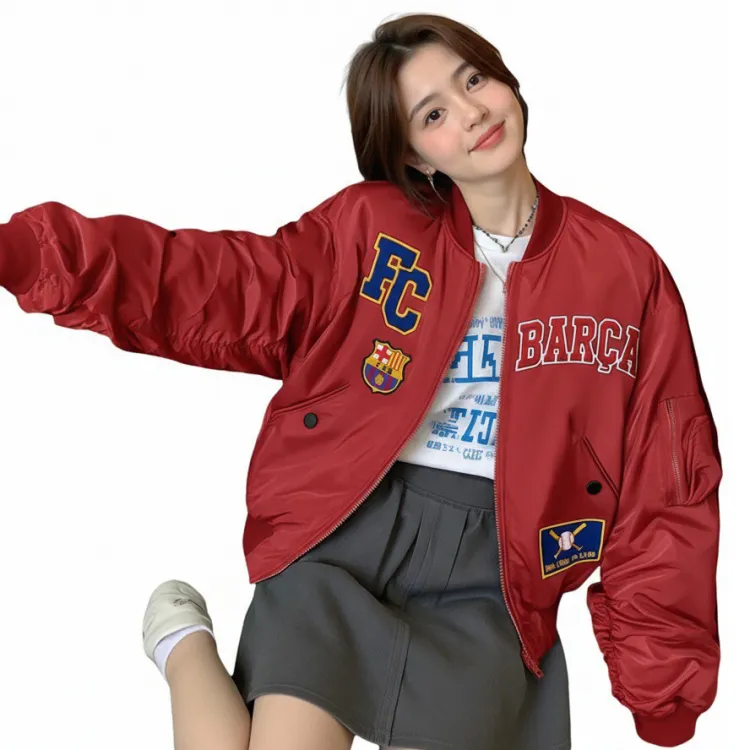 FCB/Красная хлопковая куртка [Съемный DIY тяжелый дизайн вышивки]