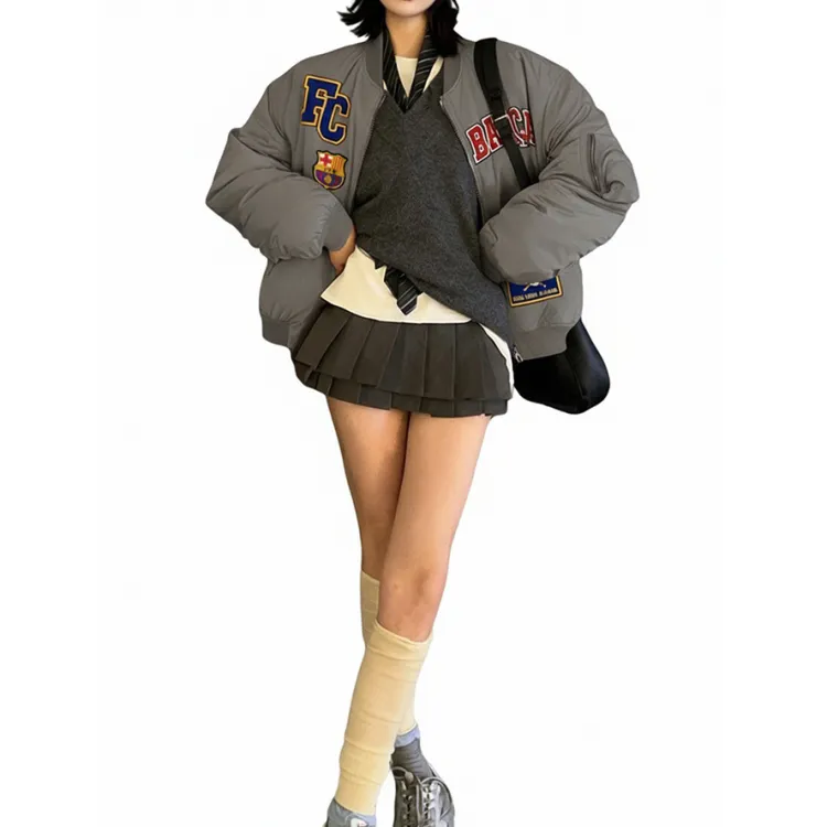FCB/Серый Хлопок Куртка [Съемный DIY Тяжелый Дизайн Вышивки]