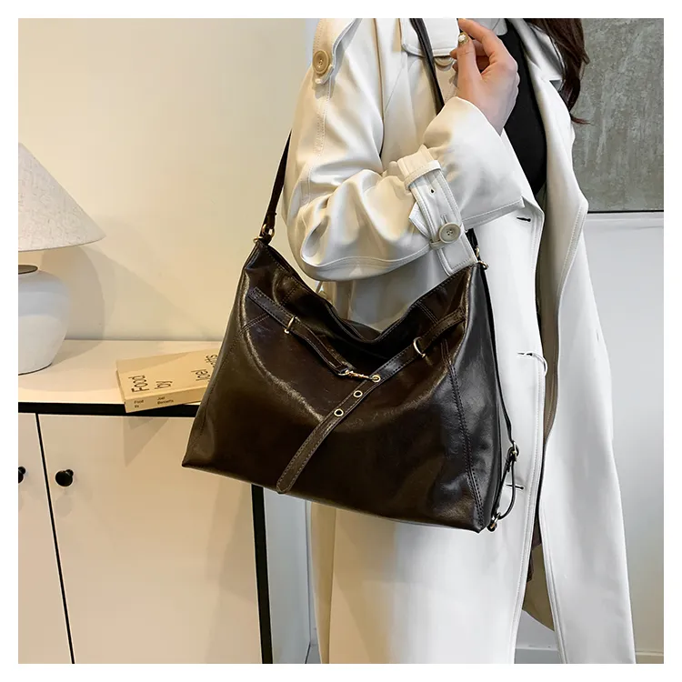FCTOSSR ПУ (полиуретан) Сумка-тоут Двойная Сумка на плечо Женская Черная Кофейная Коричневая