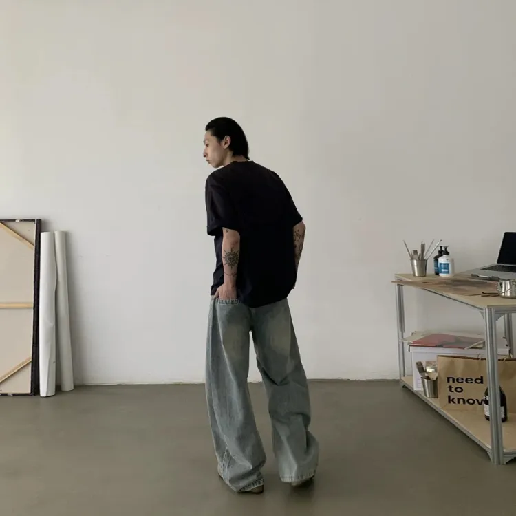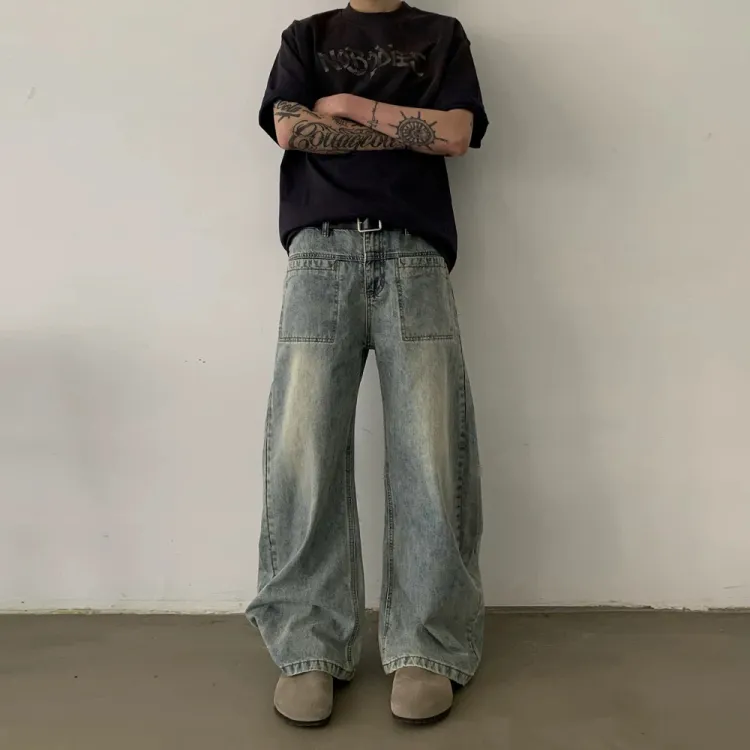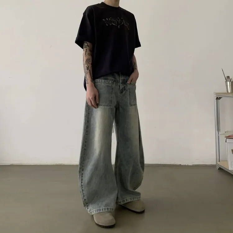 FDYZ Промытый синий Унисекс Джинсы