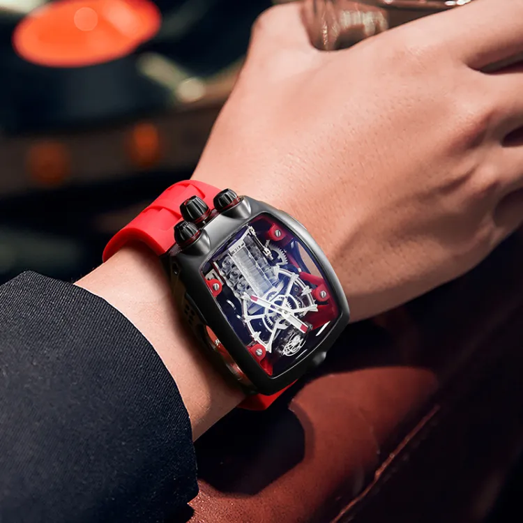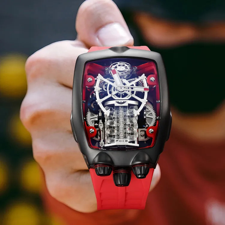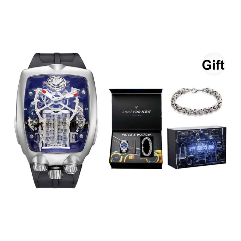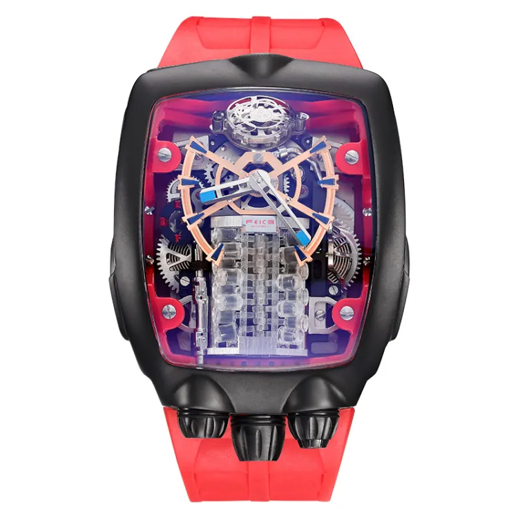 FEIKE Powerful Dragon Collection GOD OF War V16 Механический механизм Резиновый ремешок Часы Мужские часы Черный циферблат