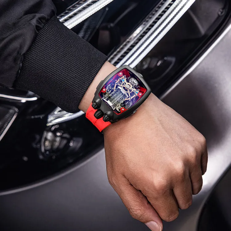 [Подарочная коробка комплект + модный кубинский браслет] Черный корпус с красным ремешком