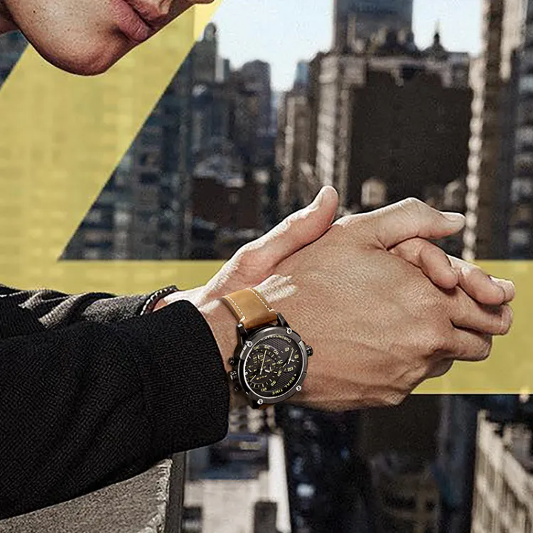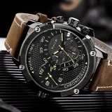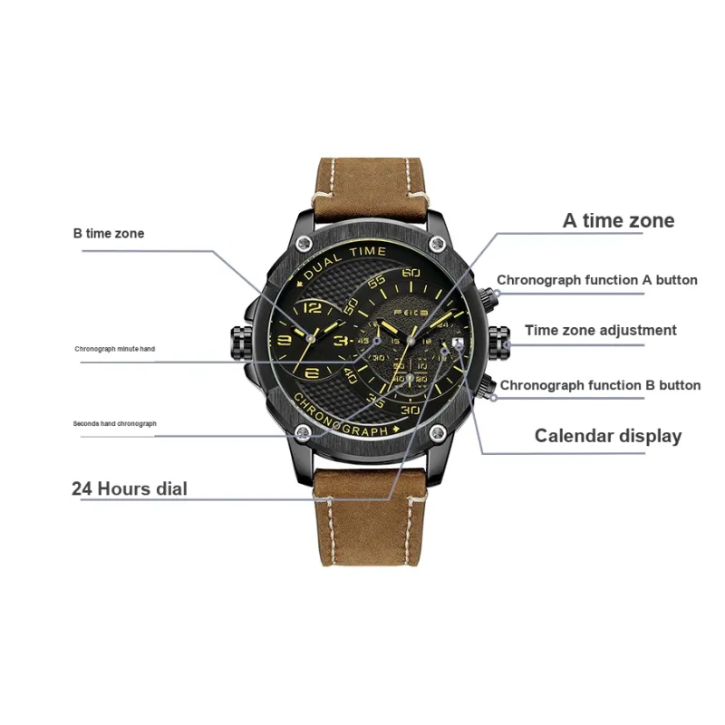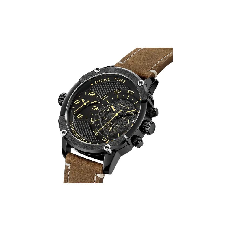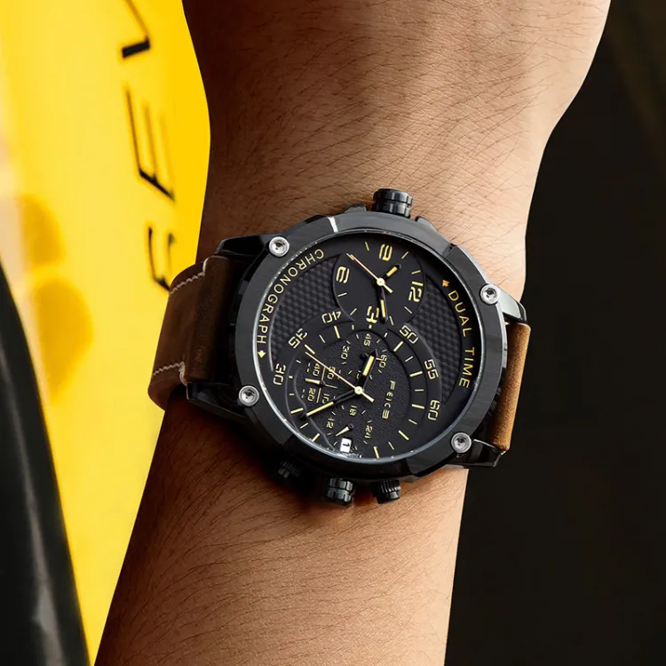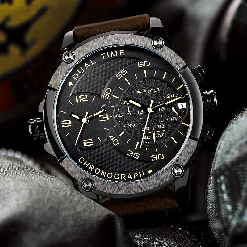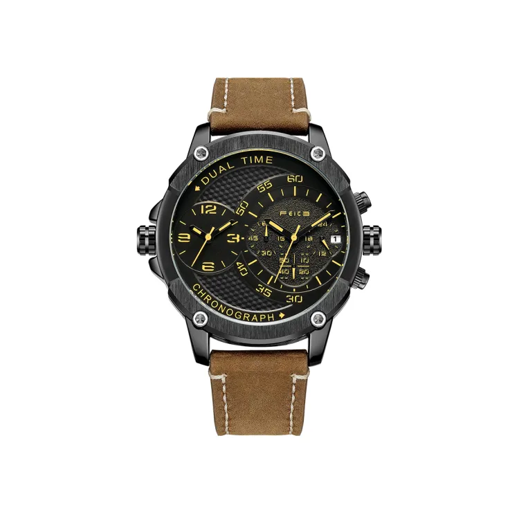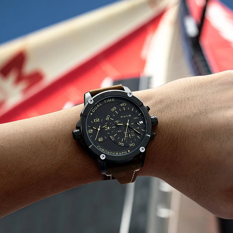 FEIKE Серия Wind Кварцевый механизм Естественная кожа Ремешок Часы Мужские Черный циферблат FK025