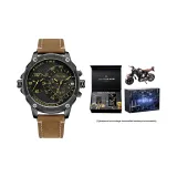 Комплект:[Подарочная коробка комплект + Байкерский украшение] Черный корпус и черный циферблат с коричневым ремешком