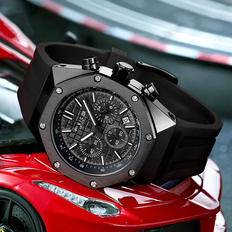 FEIKE Серия Wind Chasing Кварцевый механизм Часы Мужские Черный циферблат FK052