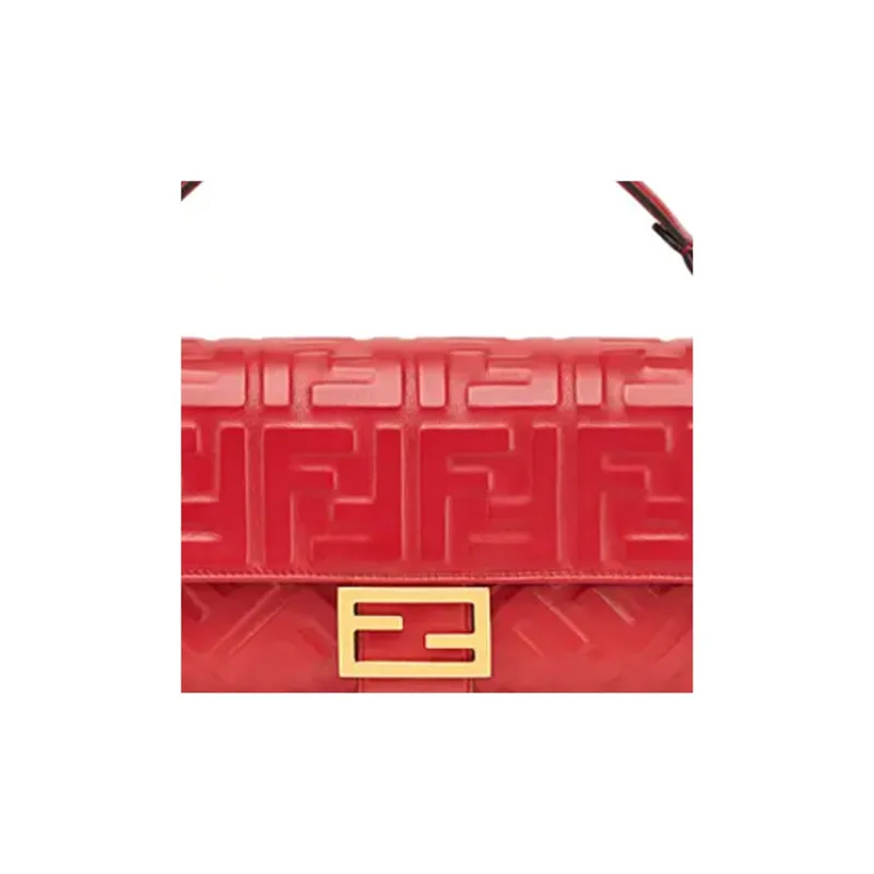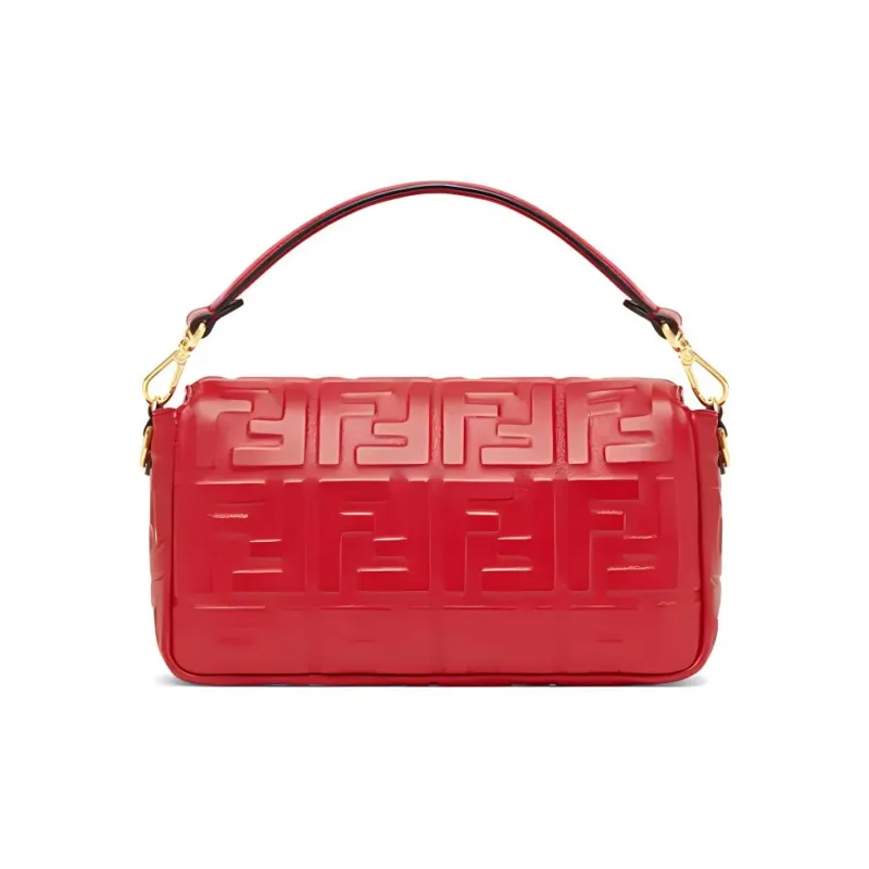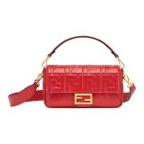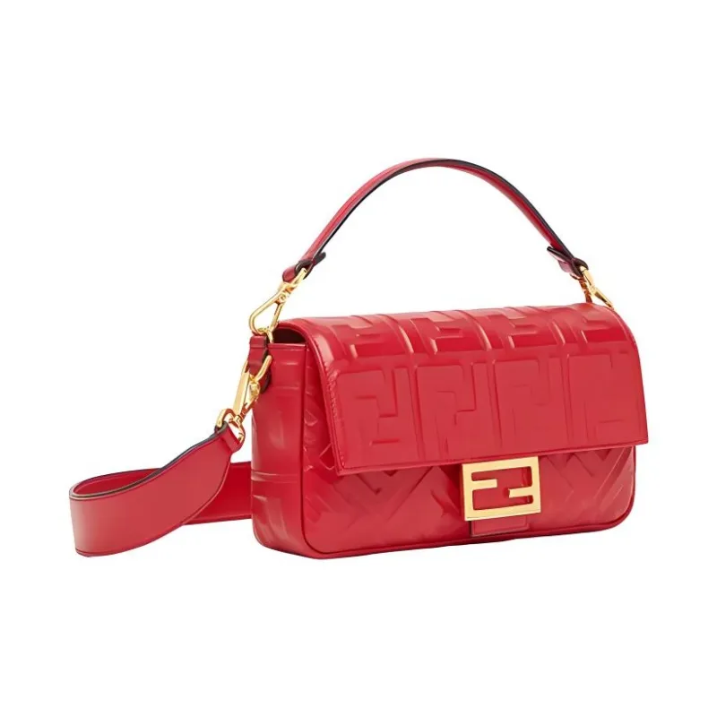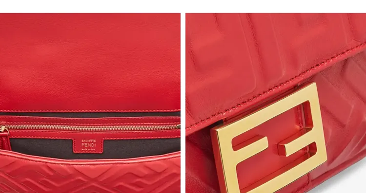 FENDI Baguette Кожа Наппа с Овчиной Сумка Baguette Сумка через плечо Сумка среднего размера Женская Красная