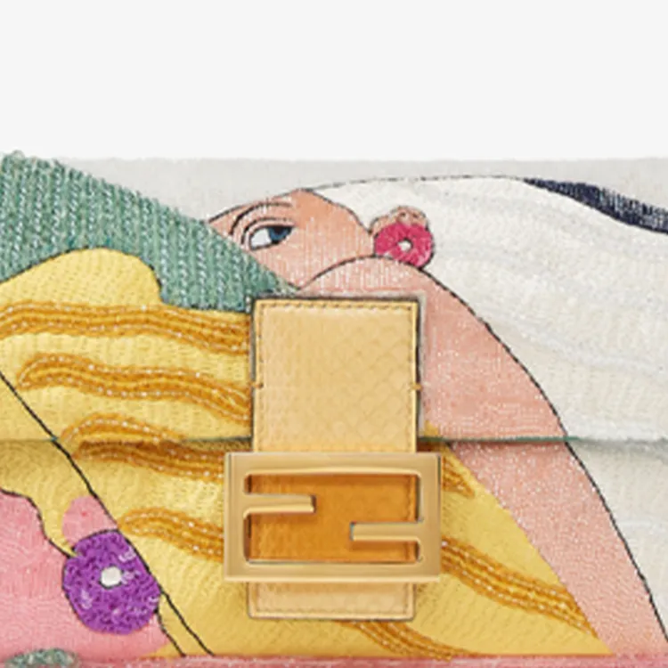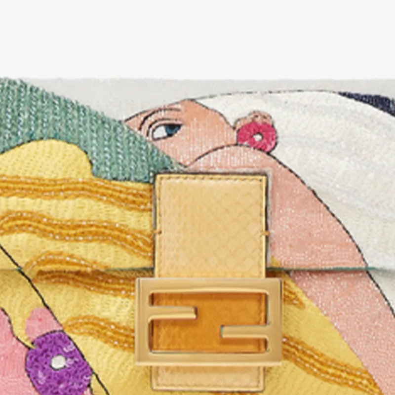 FENDI Baguette Satin Polyester Плечевая сумка Сумка среднего размера Женская Желтая Многоцветная